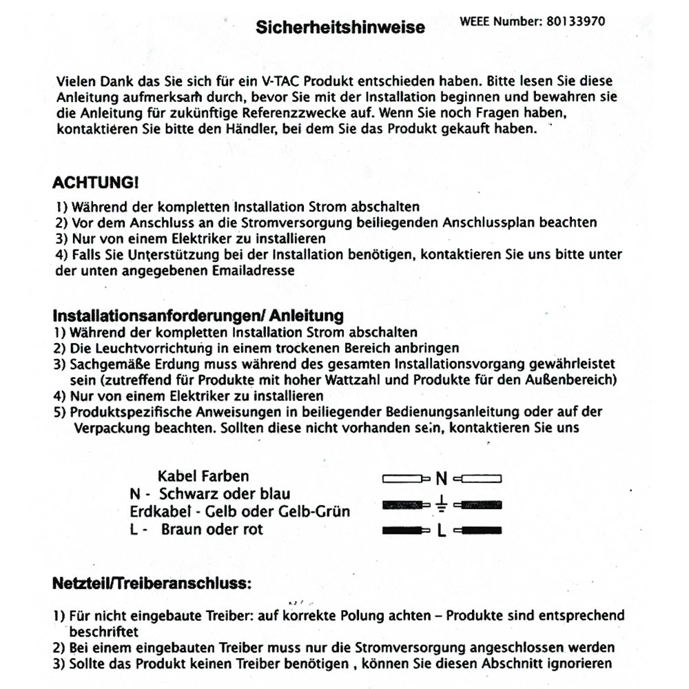 The light cable 200 cm is also included. Eine Verpolung zerstört in der Regel die LEDs. Dioden gibts in den versc.