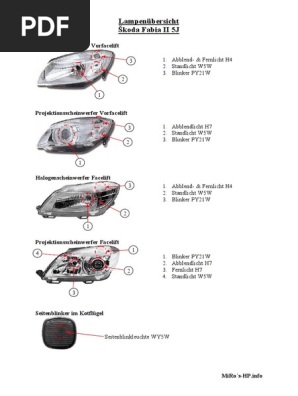 Lampenubersicht Skoda Fabia Ii 5j
